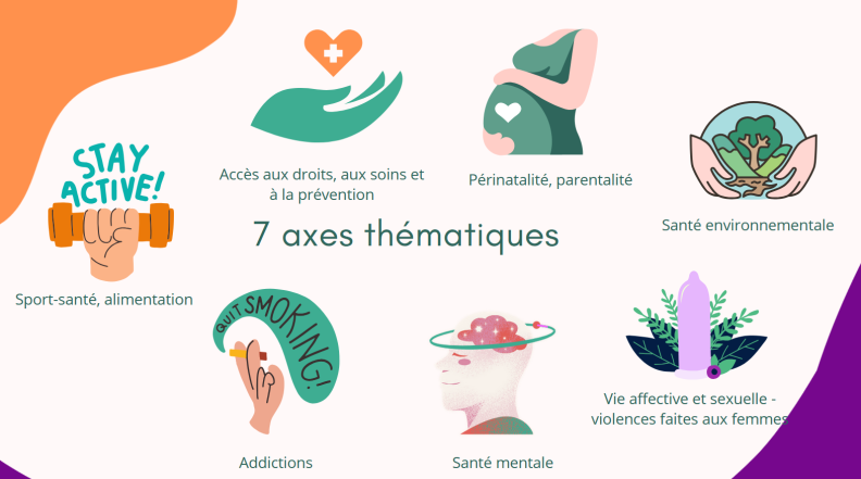 • selon les 5 axes de la promotion de la santé définis par la Charte d’Ottawa