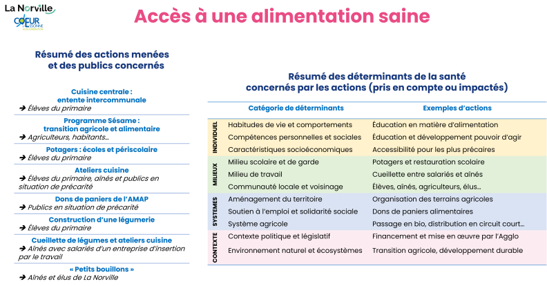 Un premier exemple autour de la question de l'alimentation, puisque la santé de chacun repose évidemment sur nos comportements et nos habitudes, mais pas seulement. Si on prend l'exemple de l'alimentation, je pense que grâce aux nombreuses campagnes de communication, les habitants sont assez informés de ce qu'il faudrait faire pour avoir une alimentation dite saine. Pour autant, ils n'ont pas forcément les moyens ou un accès facile. Et puis ça peut leur sembler compliqué : quand on vous dit qu'il faut manger cinq fruits et légumes, on n'a pas forcément l'habitude de les cuisiner facilement.